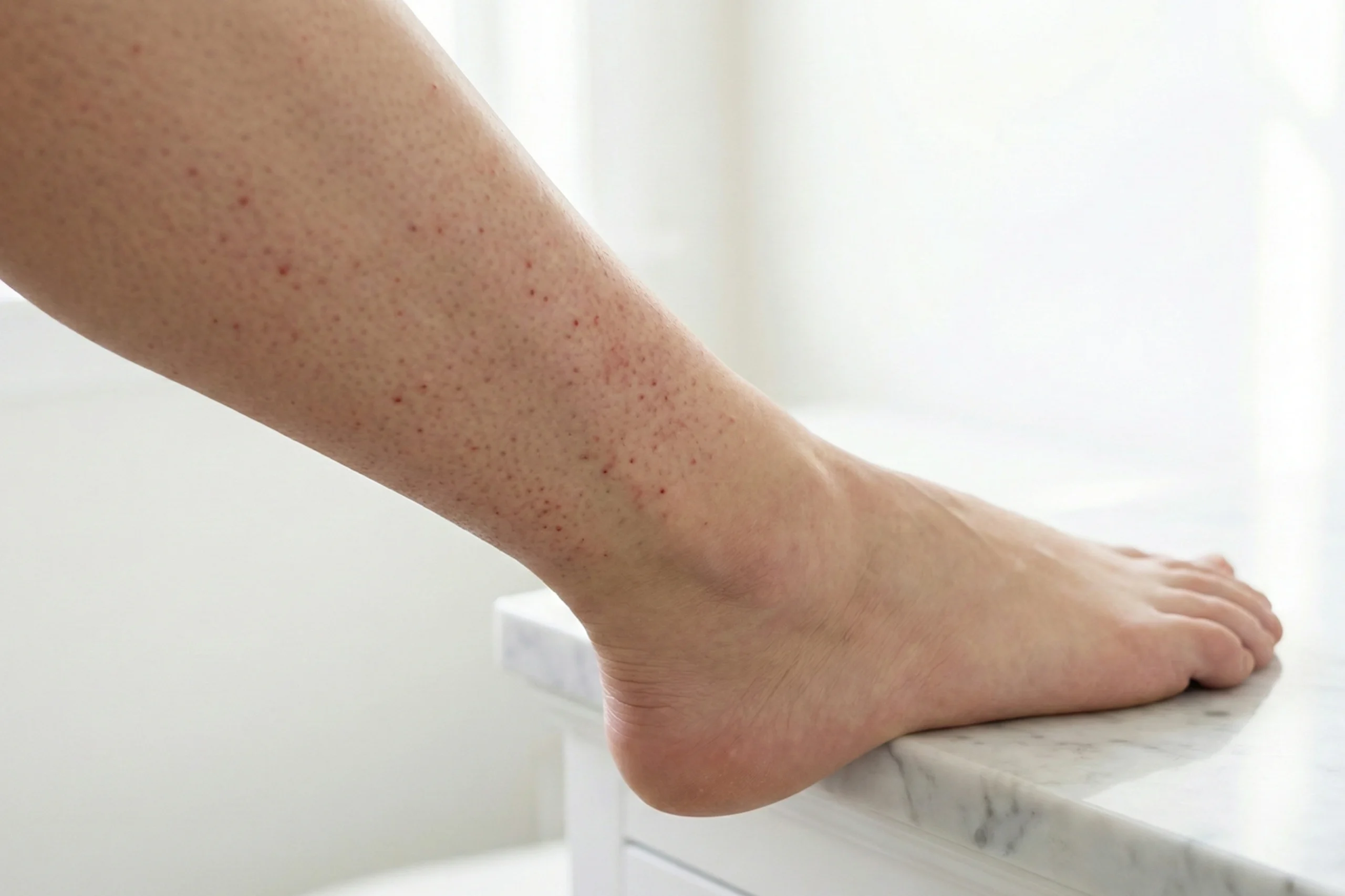 Zanim przejdziemy do rozwiązań, musimy wyjaśnić kluczową kwestię. Czerwone krostki w strefie bikini to zazwyczaj zupełnie inny problem dermatologiczny niż czarne kropki na łydkach.