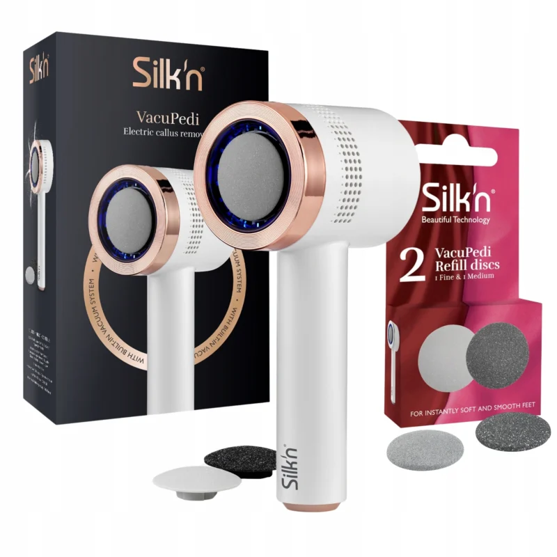 Uzyskaj gładkie stopy dzięki naszemu elektrycznemu i inteligentnemu urządzeniu do usuwania martwego naskórka Silk’n VacuPedi wraz z system próżniowym. Teraz w zestawie z wymiennymi tarczami.