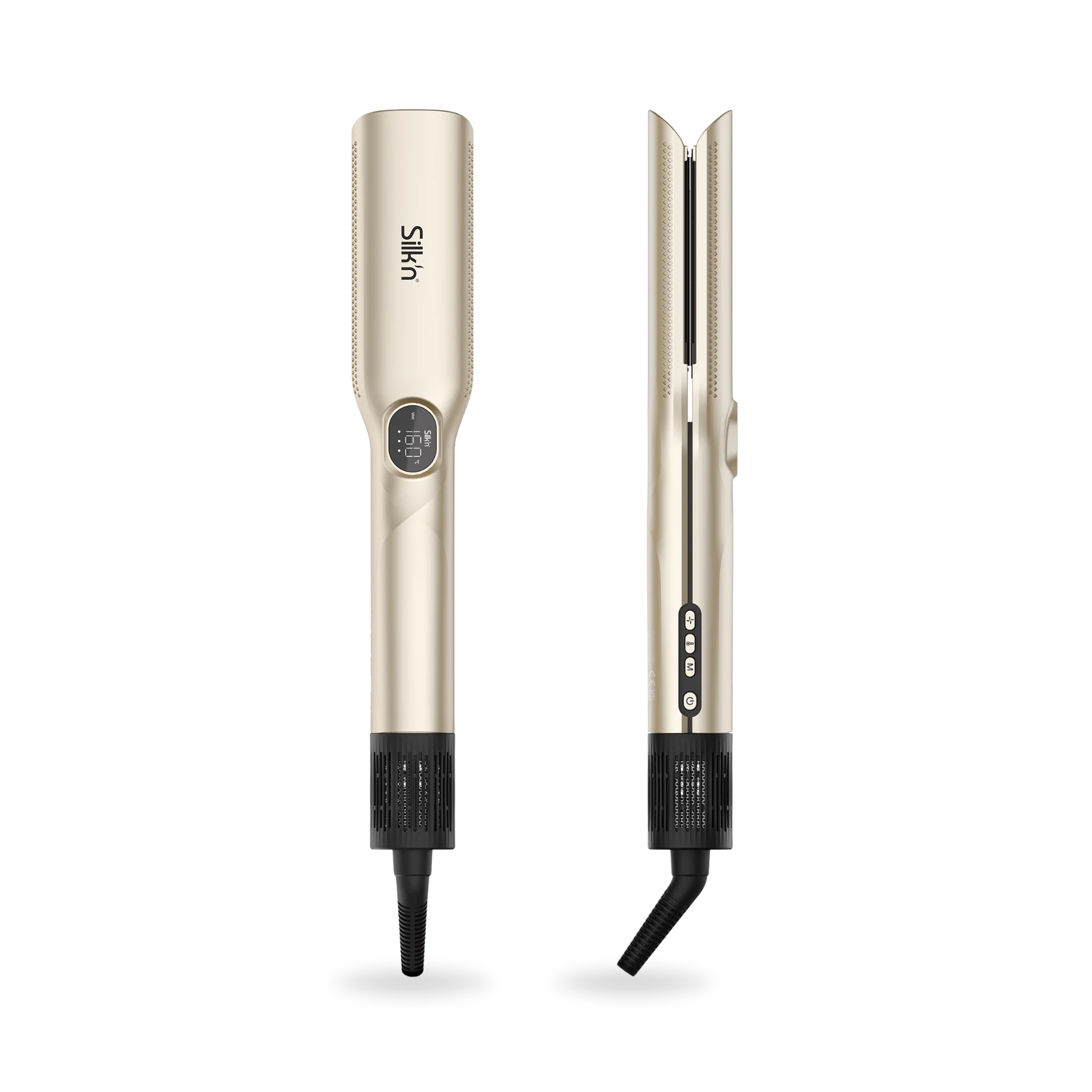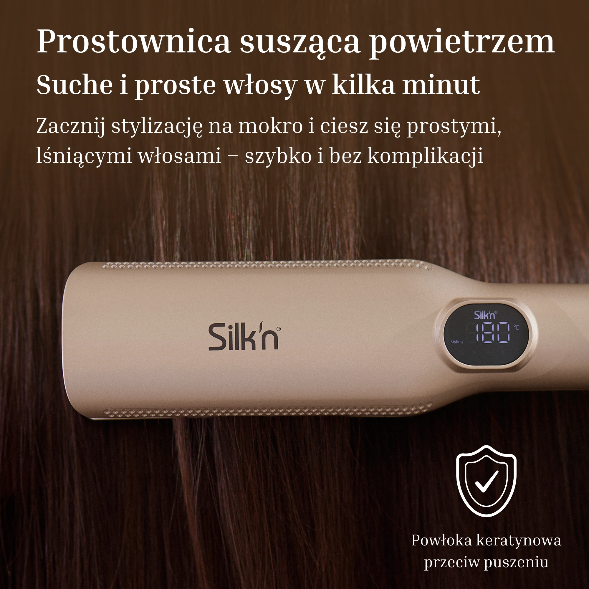 Aeroprostownica SilkyAir Trinity to wielofunkcyjne urządzenie, z którym oszczędzisz czas i miejsce. Łączy w sobie działania prostownicy oraz suszarki – na mokro i sucho. Ceramiczno-nylonowe płytki pokryte keratyną wygładzają i nadają blask włosom, a mocny, regulowany nawiew oraz szeroki zakres temperatur (80–230°C) zapewniają pełną kontrolę nad stylizacją. Uzyskaj efekt gładkich, lśniących włosów bez puszenia – szybko i profesjonalnie. Niezależnie od tego, czy zaczynasz od wilgotnych włosów, czy tylko poprawiasz fryzurę.