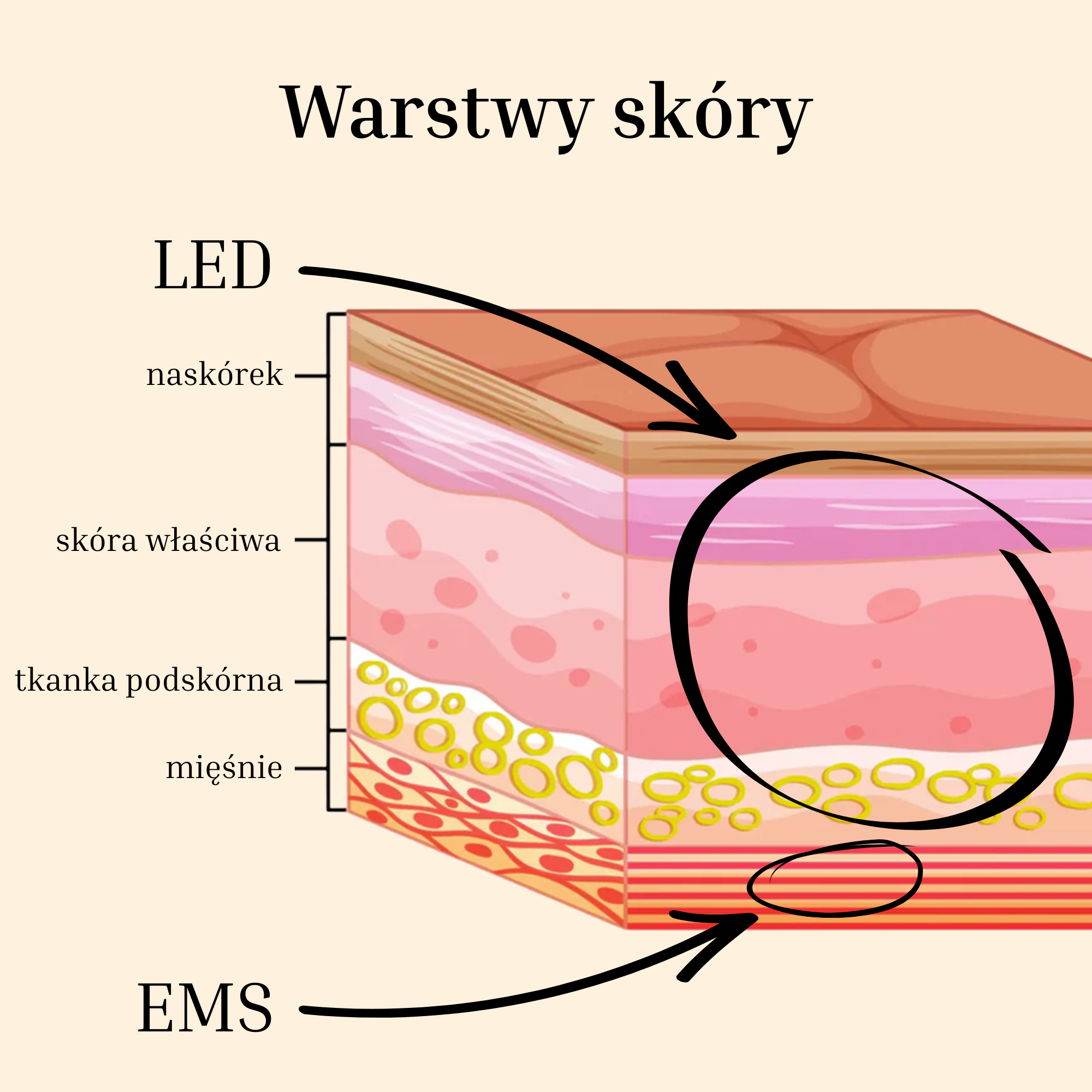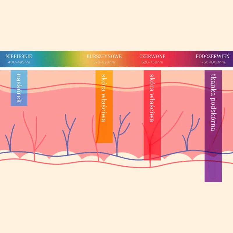 Światło LED (czerwone, ciemnoczerwone i bursztynowe) jest absorbowane przez naskórek i skórę właściwą, dwie górne warstwy skóry. Proces ten uruchamia aktywność komórkową, która pomaga odnawiać komórki skóry i naprawiać starzejącą się tkankę. Redukuje drobne linie i zmarszczki, stymuluje kolagen, pomaga poprawić krążenie krwi i wyrównuje koloryt skóry. Po każdej sesji skóra wygląda piękniej i promienniej niż wcześniej.