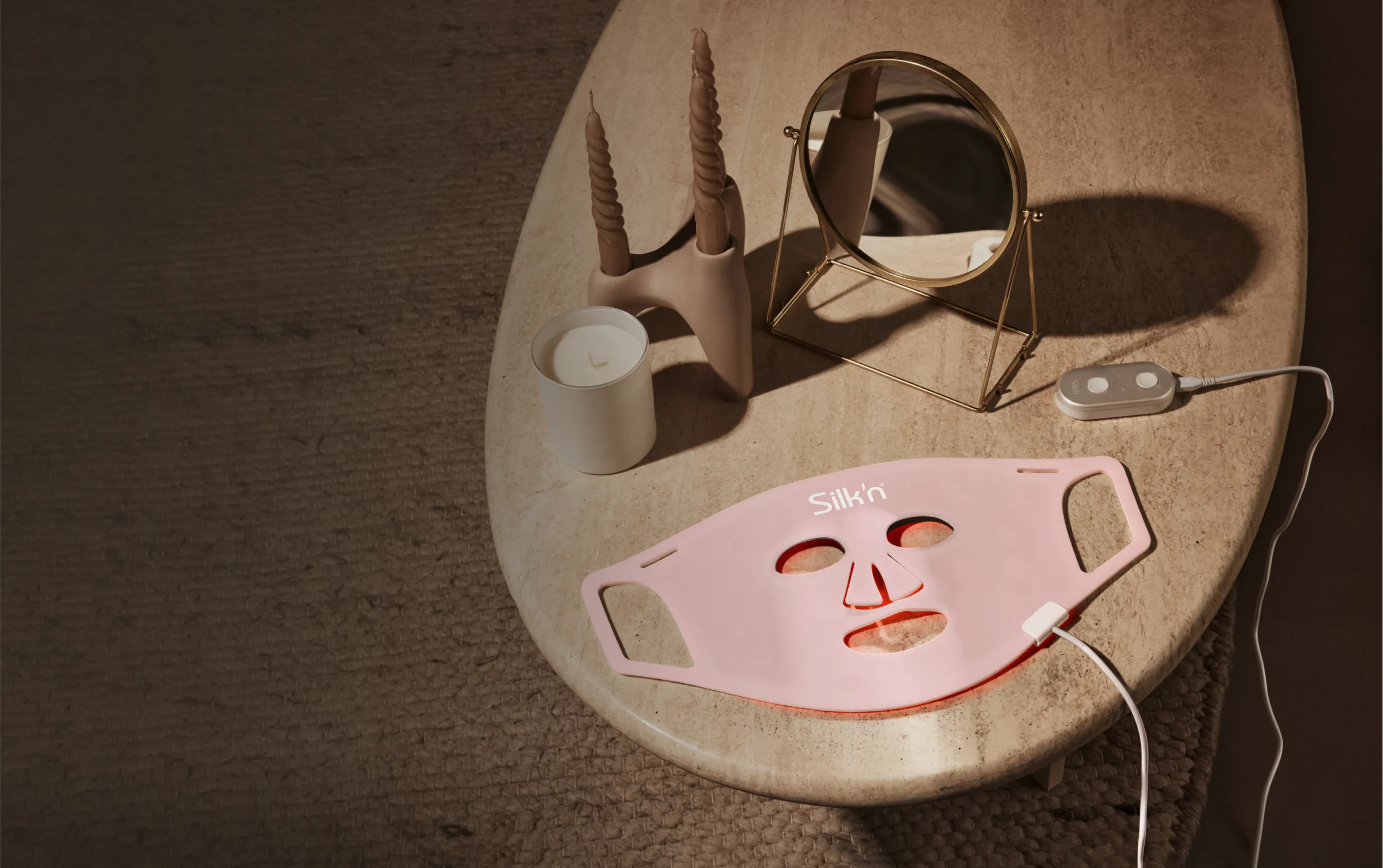Silk’n LED Face Mask 100 wykorzystuje cztery kolory światła LED – czerwony, niebieski, żółty i fioletowy, aby wspierać skórę w walce z oznakami starzenia, zaczerwienieniami oraz niedoskonałościami.