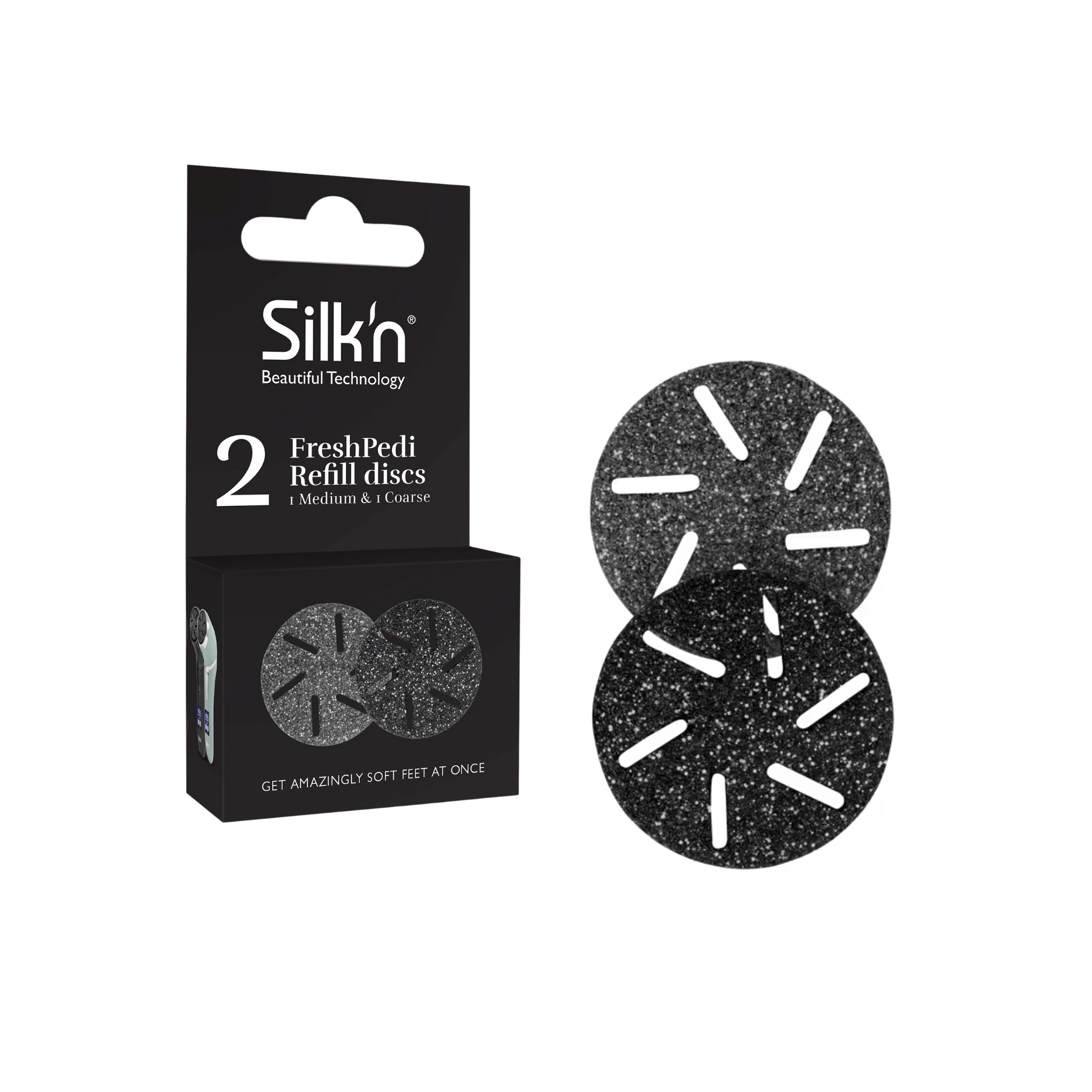 Różna ziarnistość tarcz pozwala dobrać odpowiedni stopień ścierania dla Twoich stóp, aby zabieg był nie tylko skuteczny, ale również przyjemny.